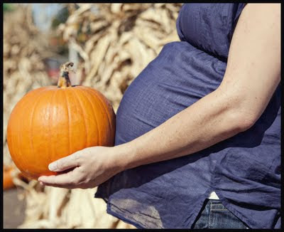 Last weekend we went to the pumpkin patch to pick out some pumpkins. We came across this cute little pumpkin that we thought just might be the baby's size. He'll be here soon!